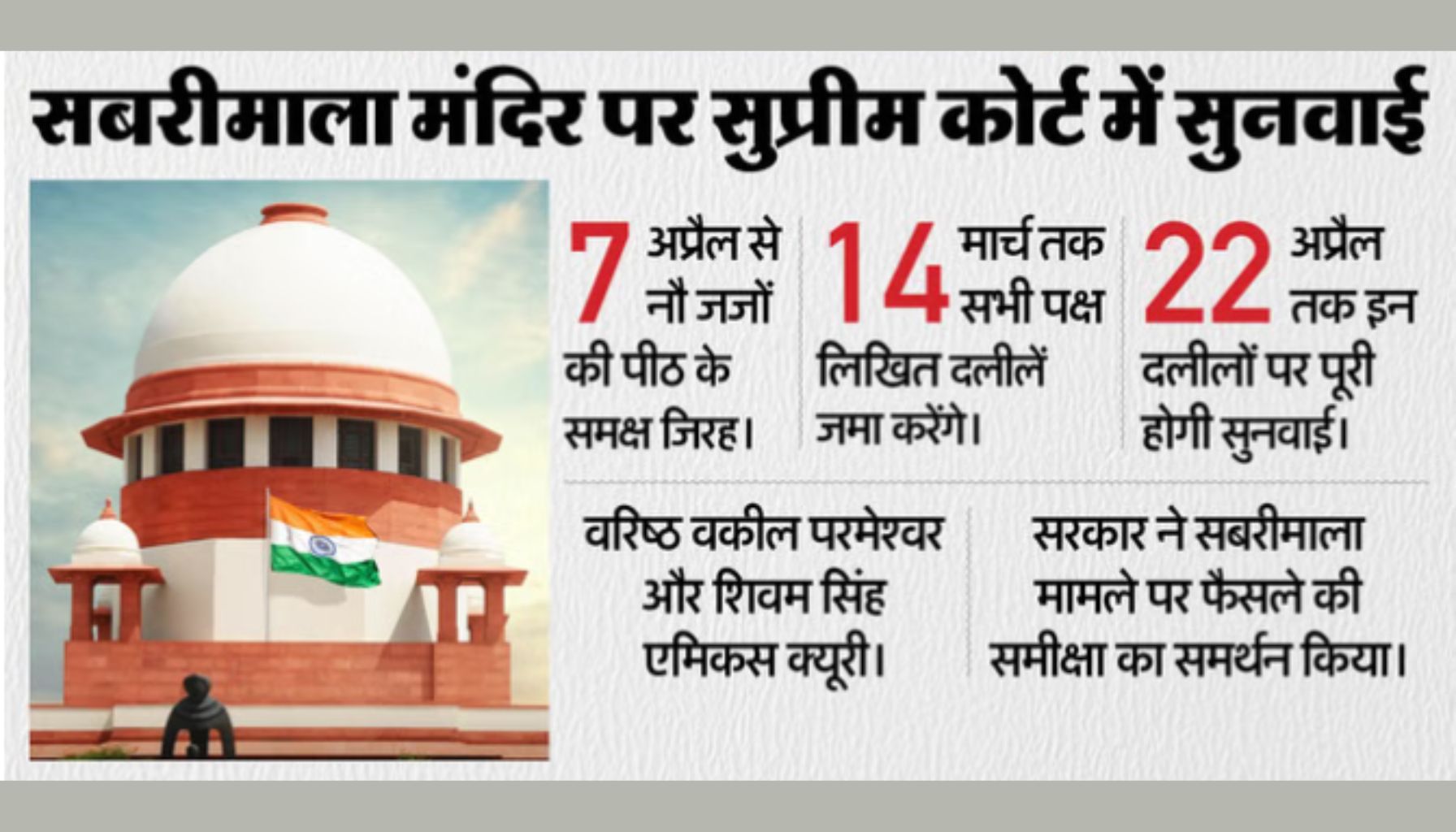 सबरीमाला विवाद पर सुप्रीम कोर्ट की नौ-न्यायाधीशों की बेंच की सुनवाई देश की संवैधानिक व्यवस्था और धार्मिक परंपराओं के बीच संतुलन की नई व्याख्या कर सकती है। 7 अप्रैल से शुरू होने वाली यह कार्यवाही केवल एक मंदिर तक सीमित नहीं रहेगी, बल्कि पूरे देश में धार्मिक स्थलों पर महिलाओं के अधिकारों को लेकर एक निर्णायक मिसाल कायम कर सकती है।