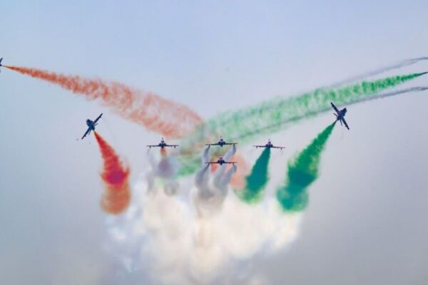 जयपुर के आसमान में तिरंगा फॉर्मेशन का रोमांच: 5 सारंग हेलिकॉप्टर और 9 सूर्यकिरण जेट्स ने जलमहल पर मचाया धमाल