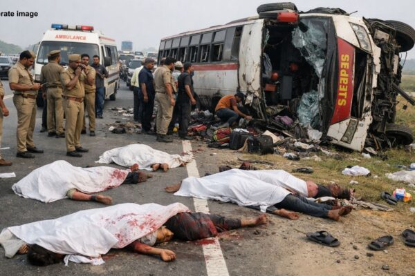 राजस्थान: के जालोर जिले में बुधवार दोपहर एक भयावह सड़क हादसा सामने आया, जब जैसलमेर-जामनगर नेशनल हाईवे (NH-68) पर एथेनॉल से भरा एक टैंकर पलट गया और कुछ ही पलों में आग का गोला बन गया। हादसा सांचौर क्षेत्र के सिंवाड़ा ओवरब्रिज के पास हुआ, जहां टैंकर के पलटते ही आग की लपटें करीब 200…